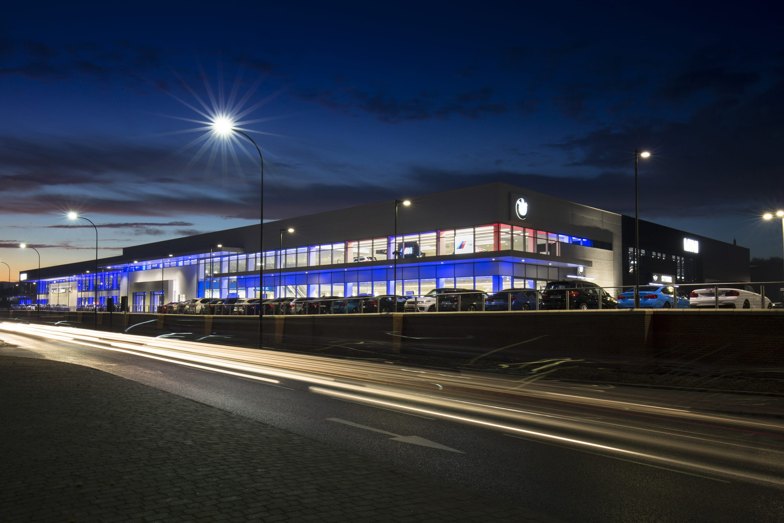 An extensive conversion and redevelopment of an existing warehouse to create a 215,000 sq ft dealership for BMW and MINI brands. A multi-storey car deck was also constructed for extra storage.